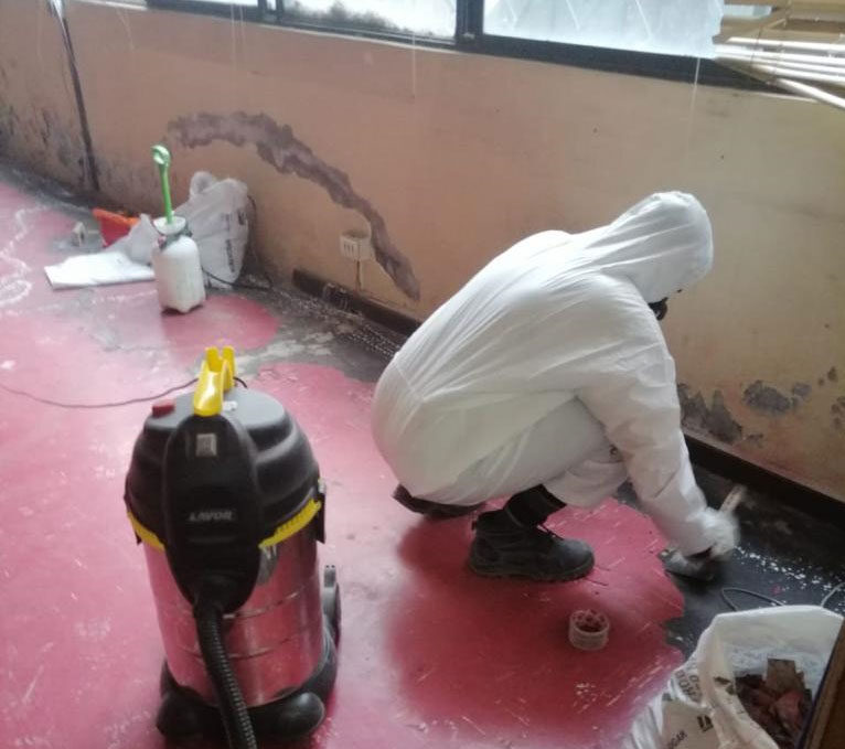 Aplicación de técnicas de contención en bodegas de gran volumen, asegurando control ambiental durante el retiro de asbesto friable.